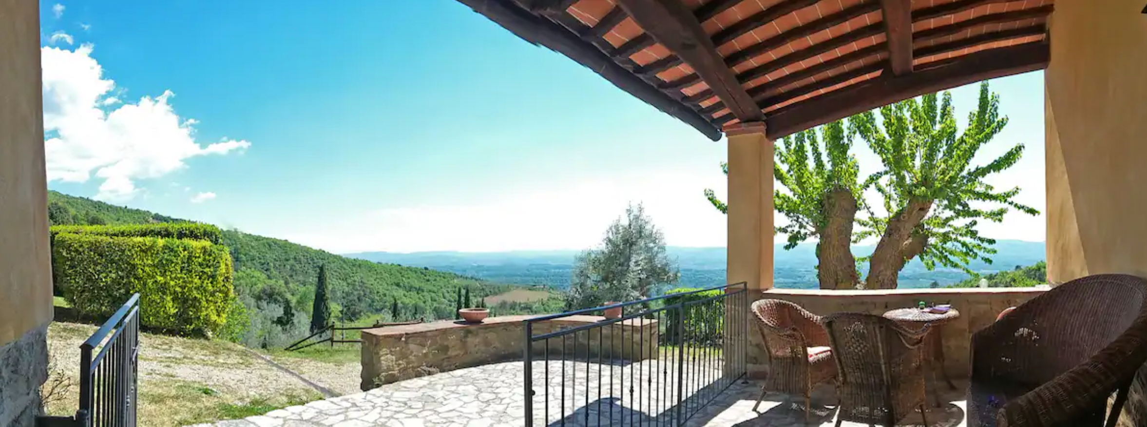 Nestled on the Pratomagno slope, overlooking the Valdarno, we will stay at a beautiful restored Tuscan 1700 farmhouse in dominant position with a stunning view over the Valdarno valley featuring private gardens, swimming pool with a view, multiple luxurious common spaces.